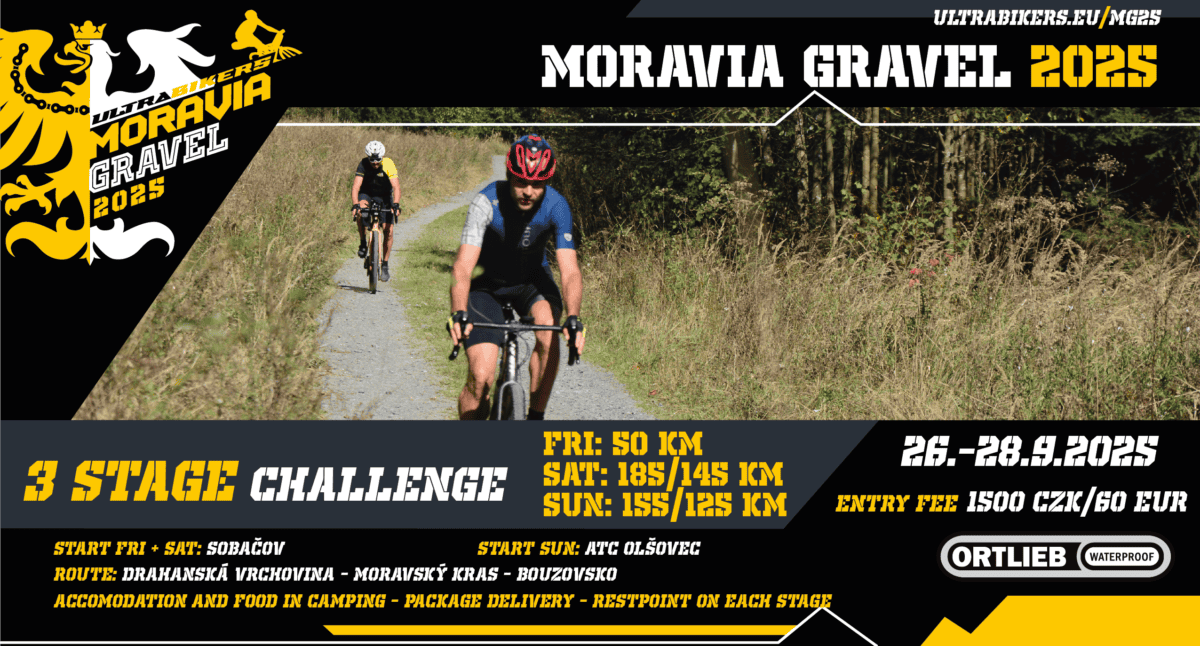 MORAVIA GRAVEL 2025 je 3etapová Výzva Poháru UB na trasách pro gravely.