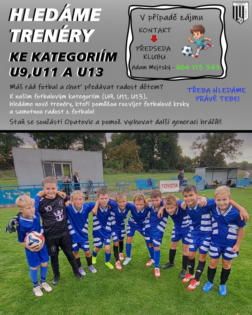 Hledáme trenéry ke kategoriím U9, U11, U13.Staň se součástí Opatovic a pomož vychovat další generaci hráčů.více info:https://afk-opatovice-nad-labem.cz/nabor-treneru/